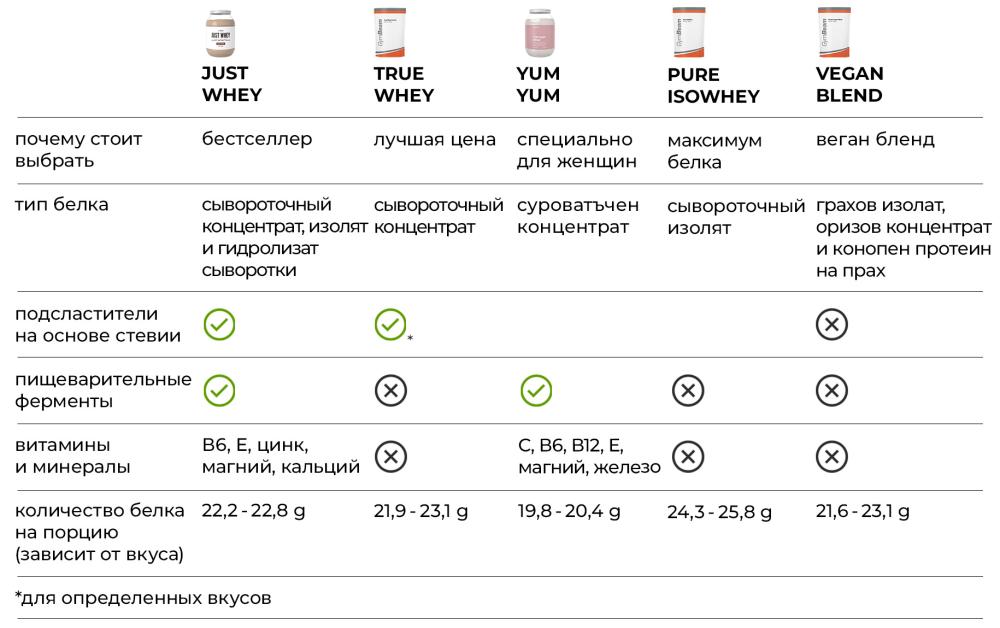 - не менее 22 г белка в одной порции / в зависимости от вкуса